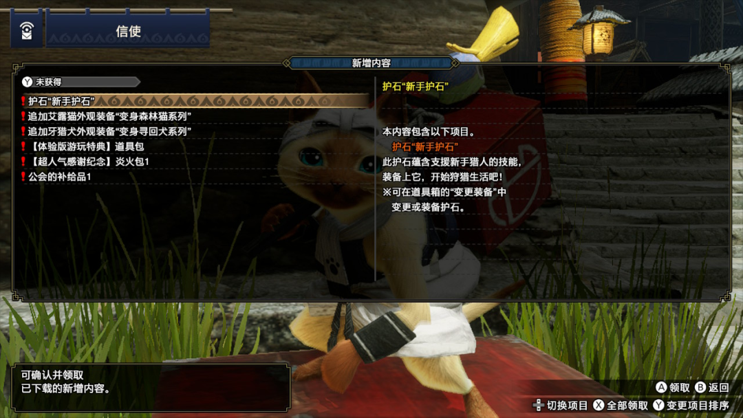 如果是有限定特典的玩家,在游戏初期就可以从信使行千里处获得新手护石。随后就可以在任意一个道具箱选择变更装备来装备。需要注意的是,在获得第一个护石之前,装备界面是没有护石这个选项的。