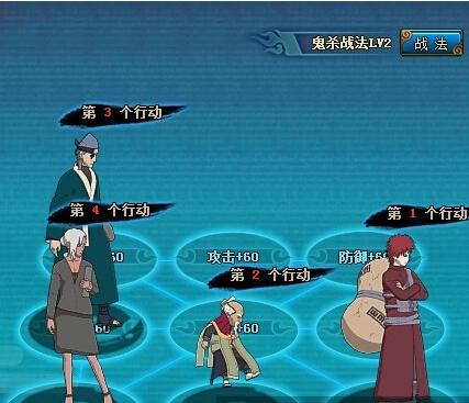 首先上路主要输出点是照美冥,照美冥的奥义需要60点蓝。在第二回合开始前必须达到60点蓝才能第一时间发动奥义。所以我们要选择一个吸蓝的忍者,这里我选择了拥有食尸效果的大蛇丸同时克制对面地狱道复活。并且在大蛇丸不被点燃的情况之下,他的回复能力能充当一个肉盾的效果我选择把他放在前排。