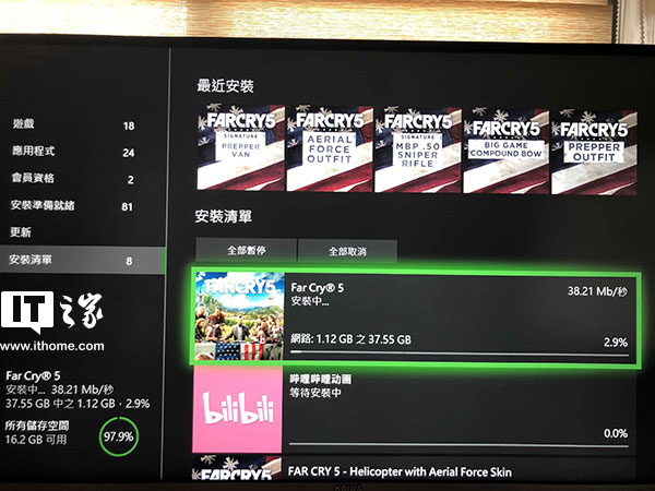 IT之家3月12日消息 育碧的下一款3A大作《孤岛惊魂5》将于3月27日正式发售,而现在已经有网友发现,这款游戏开始接受预载,我们也能看到Xbox One版本的《孤岛惊魂5》的容量大小,大