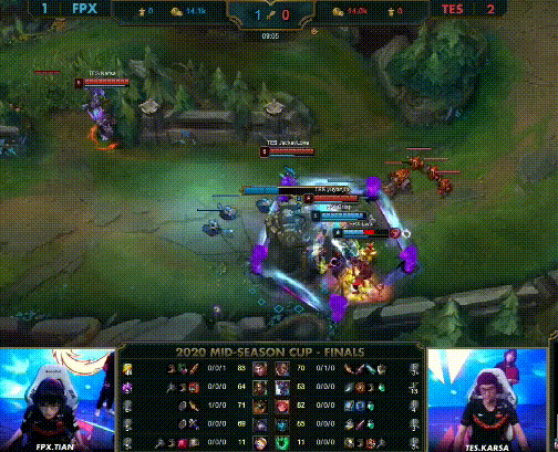比如季中杯决赛决胜局中,TES选出巨魔打野时,FPX上单只能选出杰斯应对,就是害怕卡萨的巨魔大招的减双抗,连Doinb的鳄鱼都不敢出肉了,我们可以利用巨魔大招的特性在排位中灵活选择,当敌方先选肉的时候,我们可以毫不犹豫选下巨魔进行counter。