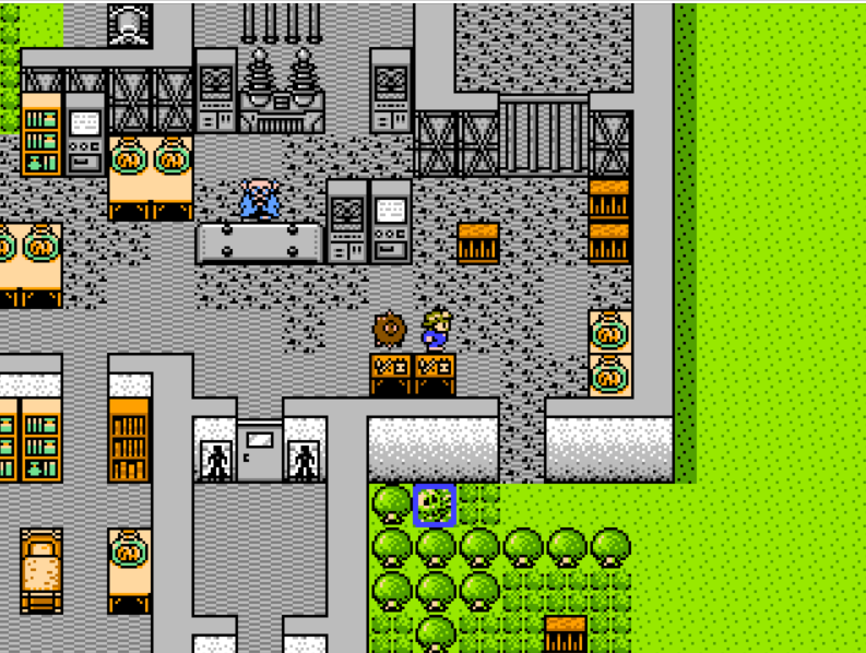 我们走出建筑发现被挡住了,对话后得到探测球形体(可以探测到地上的隐藏物品并发出声音)和气息屏蔽器(打开后不遇敌)。得到物品后,可以在拉多镇打听到第一辆坦克的消息。在村子右上角可以看到一具烧焦的尸体,对话后交给明奇,得到10g。出来后又发现烧焦尸体调查后,交给明奇得到 21g(尸体随机刷新,每次交给明奇价格都会变高;烧焦的尸体给明奇加金钱,新鲜的尸体给明奇加经验升级)。