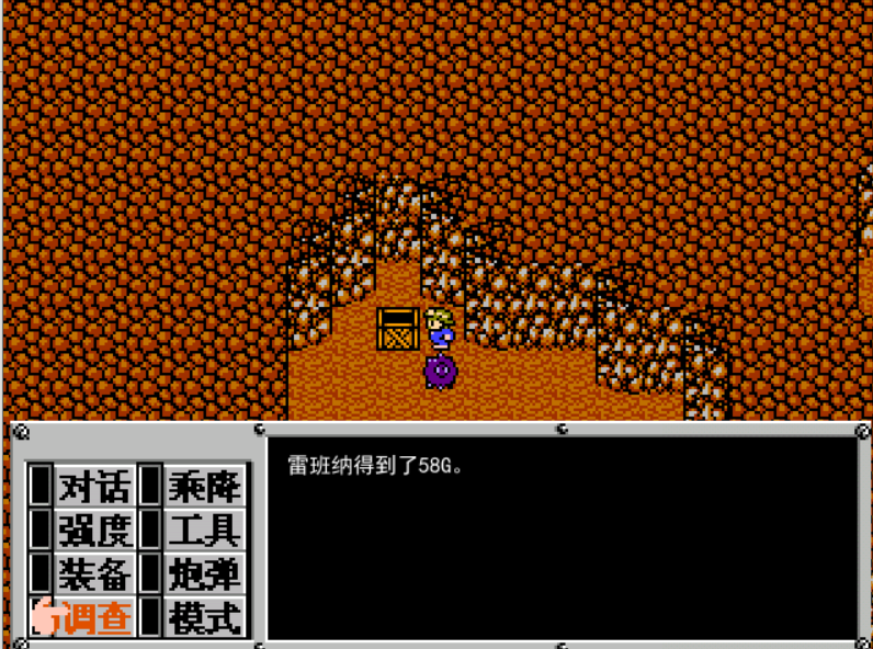 拿到箱子的东西后往右走,到尽头往下再往左,看到两个箱子,打开得到古币,109g。接着迎战战狗吧,喝个参丸把血补满(若没开气息屏蔽仪,打怪掉血的情况下),和战狗对话开战!全程防卫就行了,等来红狼。几回合后,完败战狗!剧情过后,调查旁边箱子得到皮衣,之后坐上战车起个名字出山洞吧!