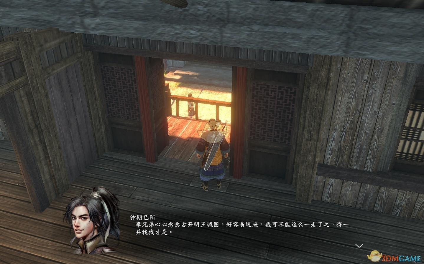 在上房梁的一瞬间esc。然后取消esc你就发现自己站在房梁上继续往前走也不会触发剧情了。