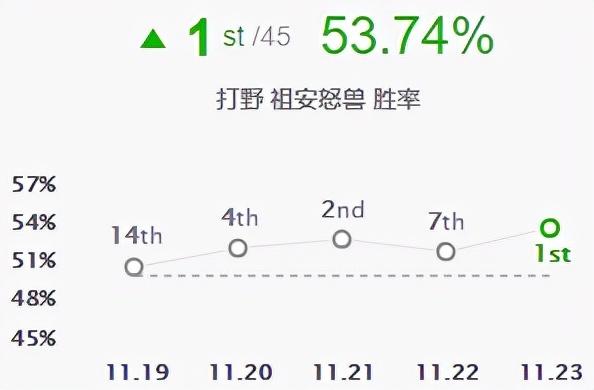 狼人的胜率在11.23版本相对于11.22版本提升了6位,目前位于版本的第一位,胜率达到了53.74%,在这个版本相对是比较给力的上分选择。