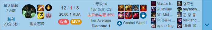 这是来自韩服大师分段(季前赛)的几局排位赛,这名大神玩家在韩服的高分段使用了致命节奏狼人,并且表现非常优异,频繁的收获MVP,而且从出装来看是半肉的出装,但是每局的击杀数都非常的高。由此观之,致命节奏狼人的收割、输出能力相对也很强。