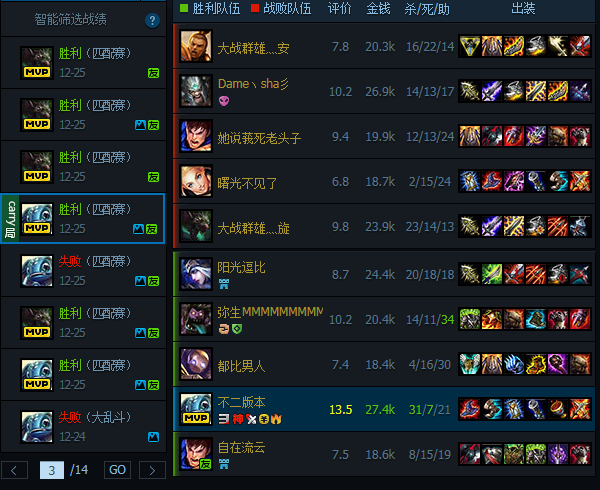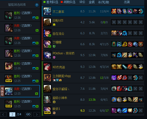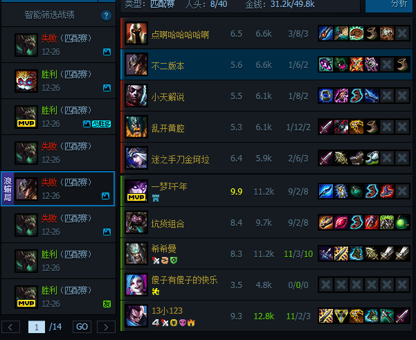浪输局:前期发育很好对线能够表现出优势,中后期到结束到处浪结果浪输了。