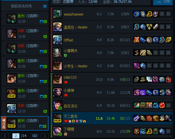 新赛季的大乱斗感觉很多英雄大家伙都不太明白怎么带符文怎么出装,很多强力英雄因为路人错误的符文出装打不出效果,安利一下我几个大乱斗绝活英雄的符文出装。战绩可以查ID狂小