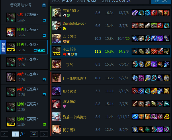 尽力局:实力相当,队友很努力的打了,都表现的很好,但是结果不尽如人意。