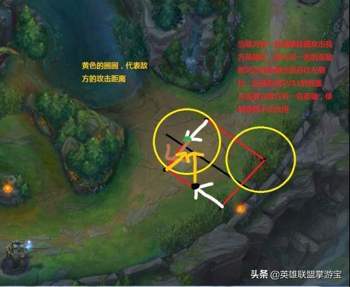 同时突破平行四边形:是指敌方两名英雄同时往前突破平行四边形(一般能证明打野来了)