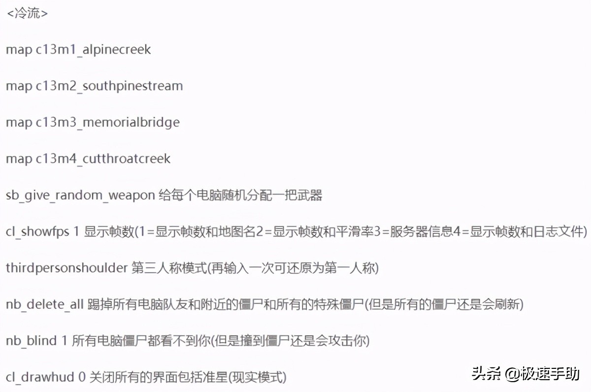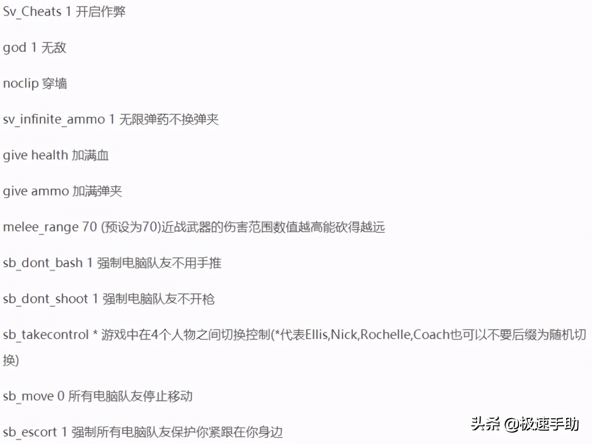 二、求生之路2秘籍代码大全