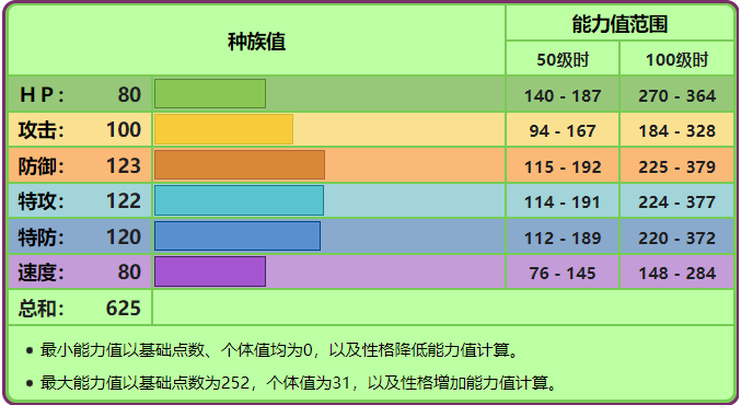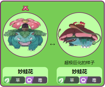 超极巨化种族值超级进化后的种族值注:A+B表示A和B;A/B表示A或B,且排在前面的是个人比较推荐的。招式的红色字体表示该招式是通过招式学习器学得的;招式