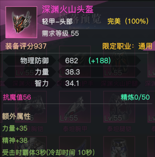 总结:火山头给物理职业提供了约5%伤害提升,外加一个受击霸体防止被怪物连招的功能性效果,而后者可能也会让该头盔在未来的pkc中大放异彩。
