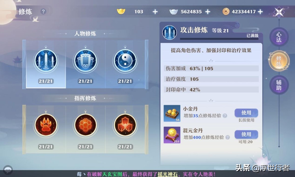 小金丹的供应必须跟上,因为混元金丹每天使用有限制,只有小金丹能拉开氪金玩家和平民玩家的修炼等级差距(行者快开启下一级修炼的时候才点满上一级,氪金大佬刚开启新修炼等级就能直接拉满)。