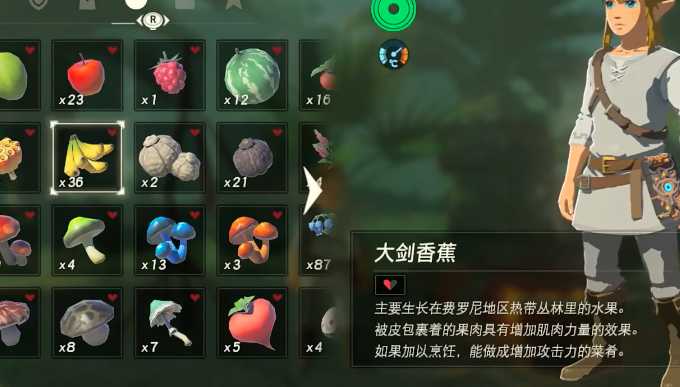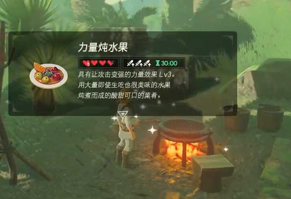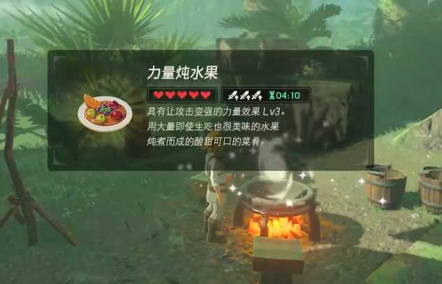 我们就可以获得lv3的力量加成持续时间4分钟。有人说四分钟也太短了。所以这次我们的料理配方加入了珍贵的龙角材料。就是我们之前赚钱的时候打的龙角。(不知道如何打龙角的朋友可以移步我之前的文章塞尔达赚钱攻略中查看)四个大剑香蕉,加一个龙角之后我们可以获得三十分钟LV3的攻击加成。非常的好用,在初期我们没有那么有经验打人马,或者是剑之试炼中都非常好用!