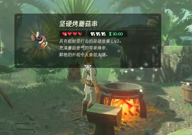 防御料理的思路和我们攻击料理的思路完全一样,只是我们把主体换成了铠甲蘑菇。同样五个蘑菇能获得LV3防御加成但只有几分钟的药效。四个铠甲蘑菇一个龙角我们就能获得30分钟LV3的防御加成。