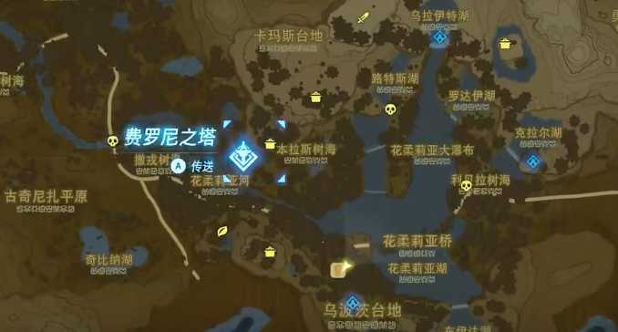 我们来到费罗尼之塔的地方,朝东北方向看去,看到有两只蜥蜴怪的地方。我们就可以飞过去,打掉蜥蜴就可以在地上捡榴莲了,有的榴莲长在树上,可以把树砍掉,榴莲就会掉到地上了。
