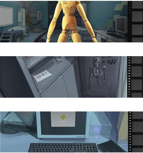 第四关需要先拿到几样道具,首先抽屉拿到小刀。再拿到假人。将假人放在X光上照射。