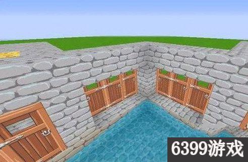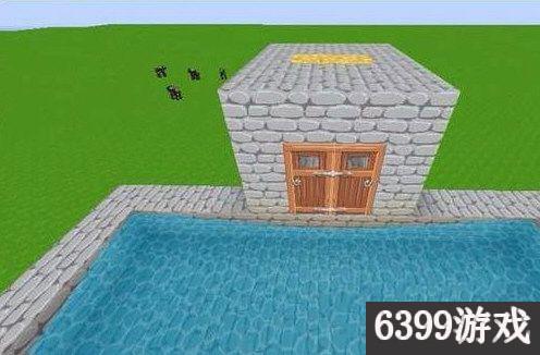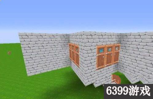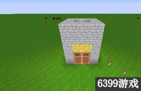然后在四个旮旯做一个围墙,先做一个圆石结构然后放门。
