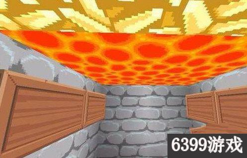 然后放置岩浆,由于铁人是三格高的,所以刚好烧到他的头,可烧身后铁锭不会被烧掉,而会掉到下面。