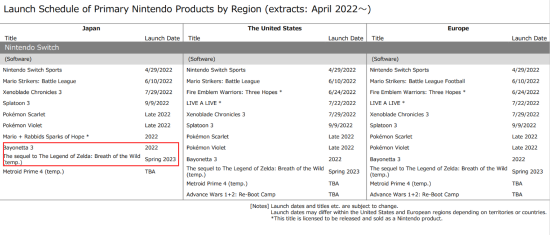 任天堂于今日公布了2021-2022财政年度财报,在财报中再次提到:《猎天使魔女3》2022年内发售,《塞尔达传说:荒野之息2》将于明年春季发售。