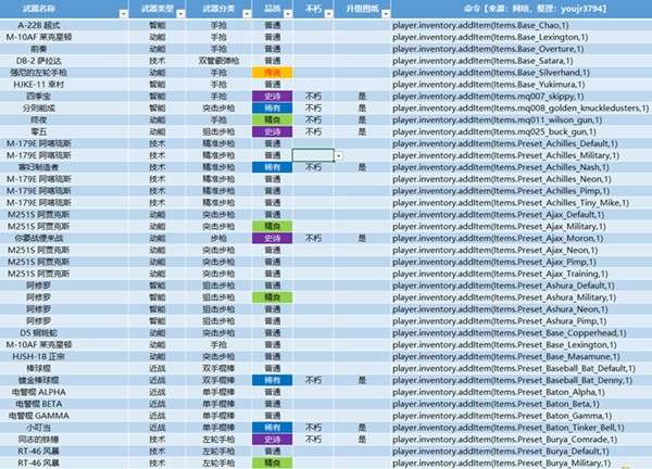 添加武器[color=Red][b][武器ID还需待补充][/b][/color]: