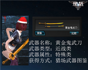 黄金鬼舞刀需要玩家通关丛林魅影,获得宝箱并集齐火炬(永久)、果实手雷(永久)、黑暗天使(永久)、黑天使之刃(永久),集齐四个永久道具便可兑换黄金鬼武刀。