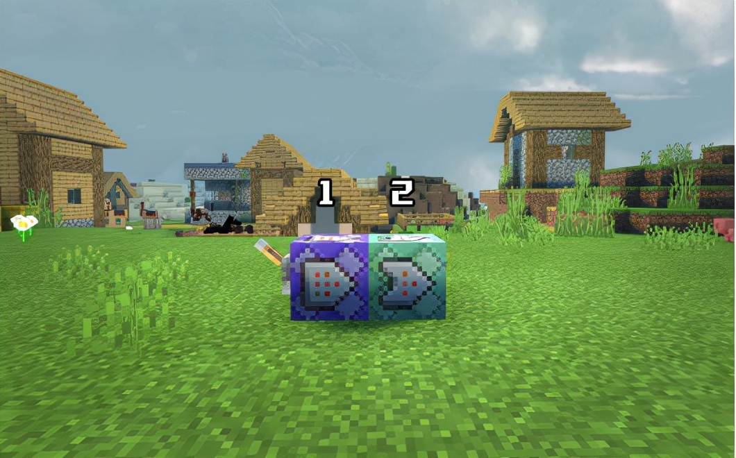 接下来,在小伙伴外出冒险的路上寻一个隐蔽处,放置两个命令方块和拉杆。