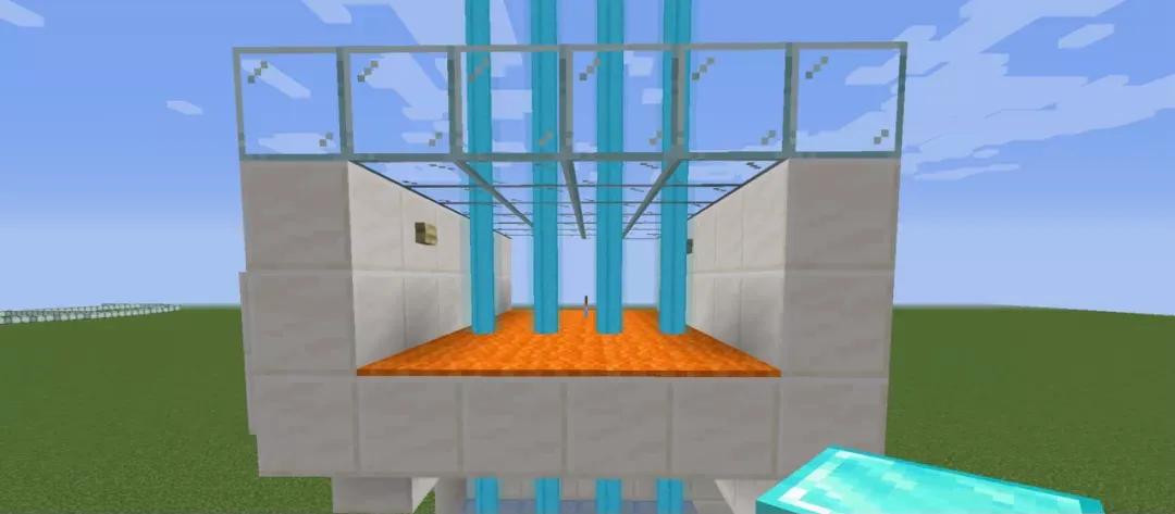 接着就是附上地毯,把刚刚暴露出来的地方给遮挡掉,上面放上玻璃,再把其他的暴露出来的地方用方块挡掉就可以了。然后这个激光门就大功告成了。如果发现按了按钮,激光消失了,可是就是过不去。那么可能是你在放方块的时候,不小心把红石电路给堵到了,导致门开不了。