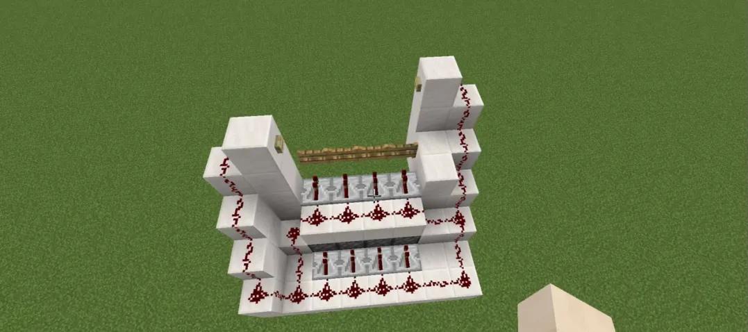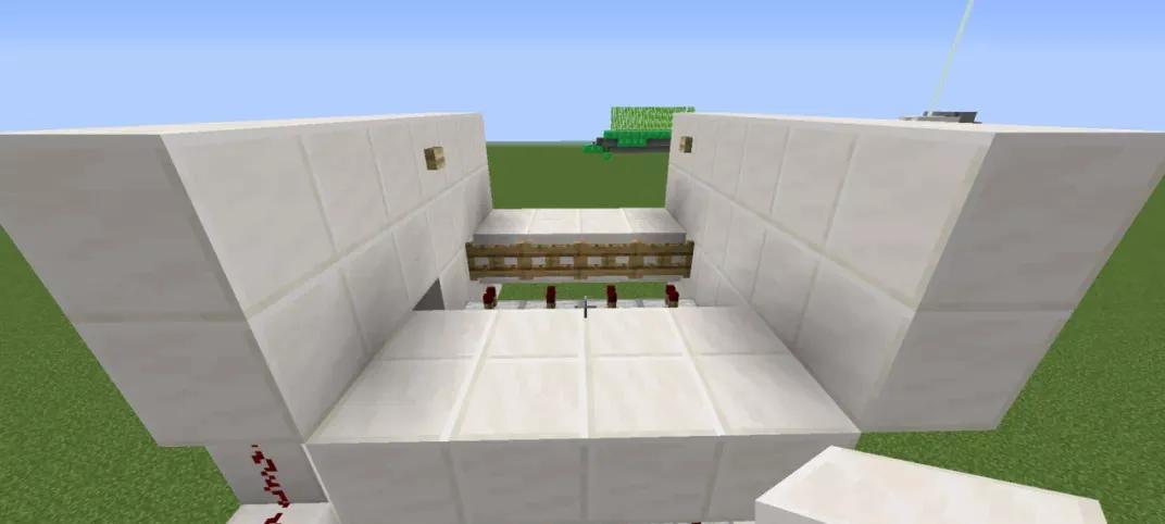 接在两旁放上方块、铺上红石电路、放上按钮。虽然看起来比较难但是照做,是可以做出来的。