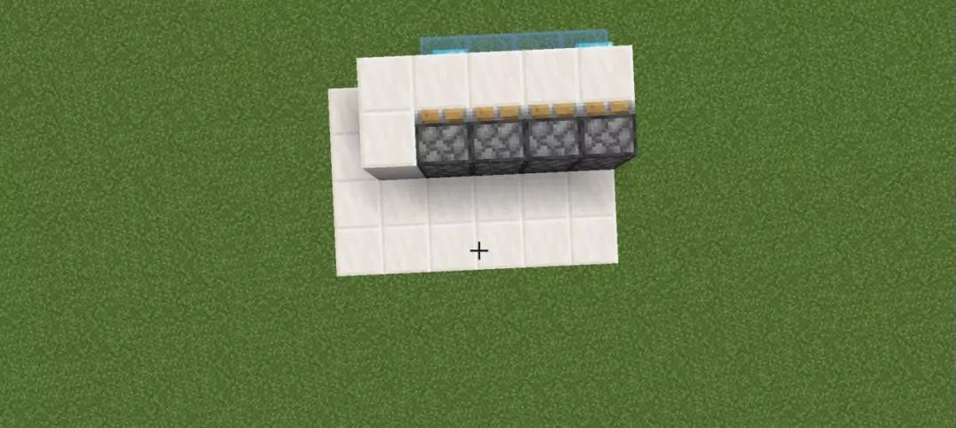 然后在粘性活塞的后面,搭上方块。就像上面这张图片一样。这是为了在粘性活塞的后面放上红石电路。