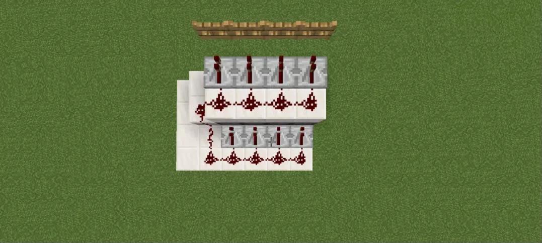 在这个粘性活塞和栅栏门的后面都放上红石中继器,再把红石中继器相互连接。