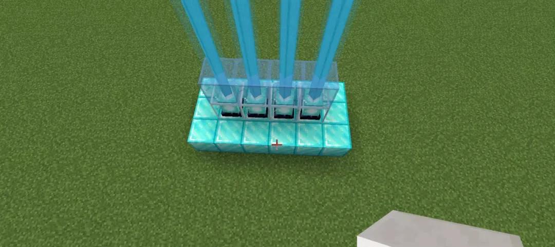 首先我们需要在地上放上能激活的信标的方块(黄金块、铁块、钻石块、下界合金块)在这里就钻石,在钻石上面放上信标,信标上面放上有颜色的玻璃。其实玻璃放不放无所谓,这样做的目的是为了让激光门变得更好看的而已。