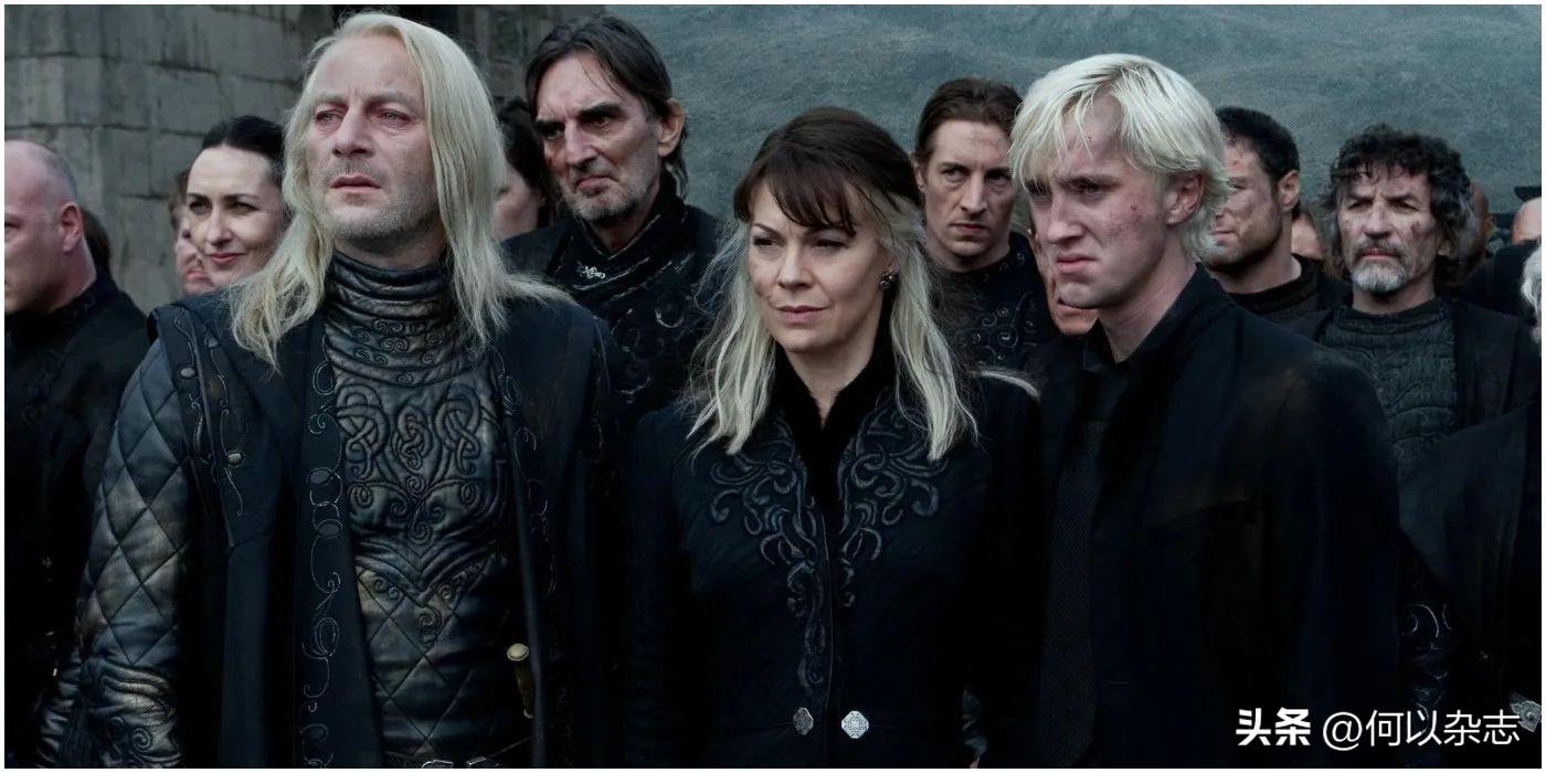 哈利在《死亡圣器》中击败伏地魔之后,马尔福一家显得无所适从。到最后,他们基本上已经脱离了伏地魔的阵营,但他们也没有选择站在凤凰社一边。于是,在大家庆祝胜利的时候,他们只能尴尬的坐在礼堂里。