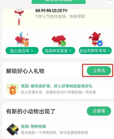 2、找到解锁好心人礼物,点击立即去。