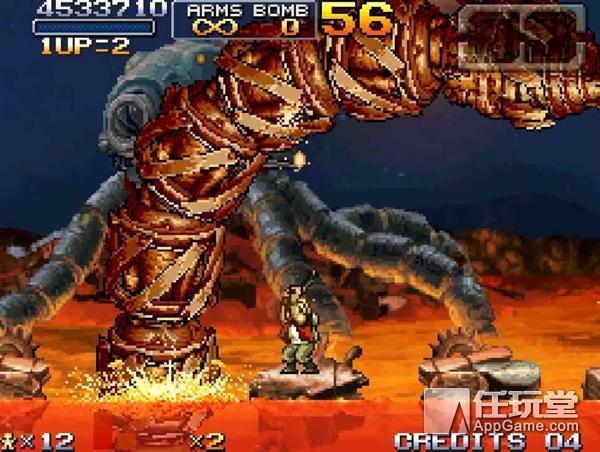 时间回溯到上世纪90年代,随着CAPCOM和SNK先后推出新一代CPS1、MVS基板,街机游戏质量更上一层楼,各种酷炫华丽的新作不断涌现,像是《恐龙快打》《街头霸王》《拳皇》等大作就强烈地刺激过我们的神经,爽快度比同期的家用机不知道高到哪里去了。不过那时候街机厅里基本是格斗、射击两大类型的天下,很少有横版动作射击游戏像80年代末《魂斗罗》那样能够引起热潮,直到1996年《合金弹头》的出现,凭借着那搞笑幽默的细腻画风和魄力十足的战斗动画,还有丰富多彩的Boss战,在没有任何用户基础的情况下斩获大量人气,一跃成为SNK看家之作,在当时简直牛逼得不行。