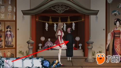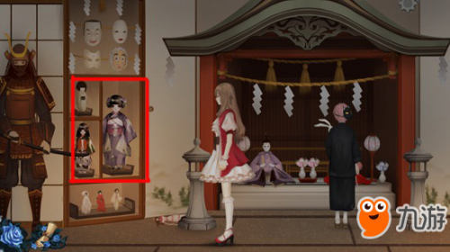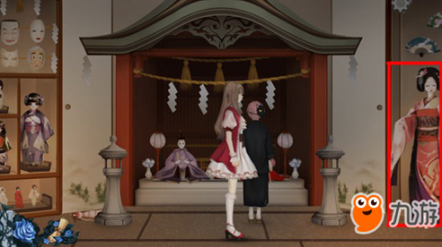 10、和式馆神社的右侧的与真人一样高的艺妓,点击触发对话“舞扇人偶”。
