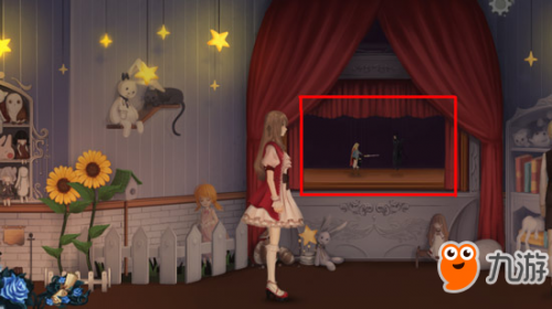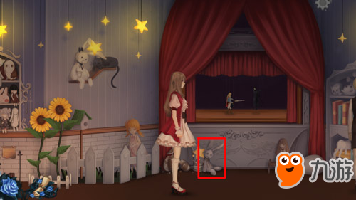 16、点击人偶舞台下面的兔子,获得毛绒兔子。(这个是给和式馆黑衣男孩的)