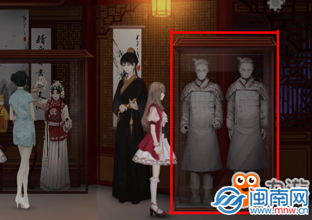 5、中国馆最右侧的兵马俑,点击触发对话“活人俑”。