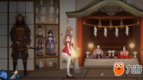 7、进入和式馆后,旁边就是盔甲人偶,点击触发对话“武士人偶”