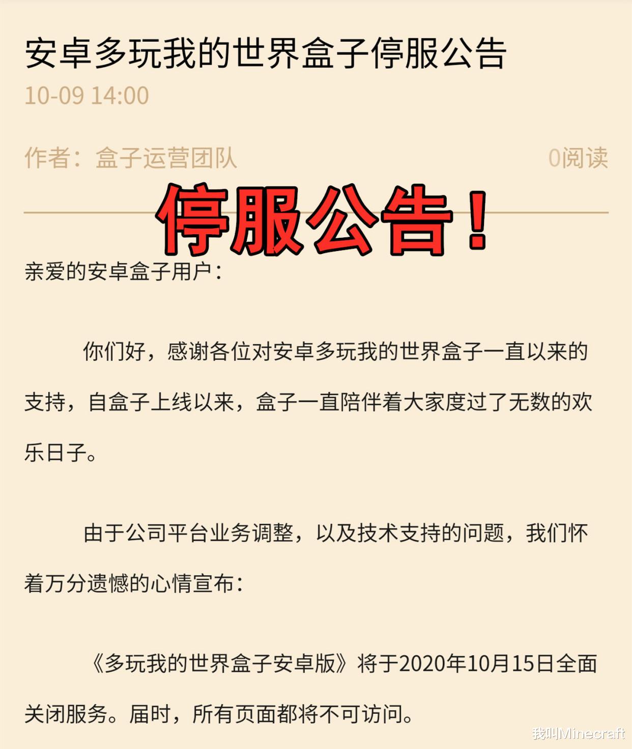 01停服公告!