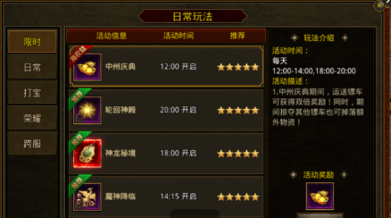 世界BOSS记得卡点击杀,行会灭魔记得最好是找有实力能拿沙的行会,多打几个BOSS多点元宝材料