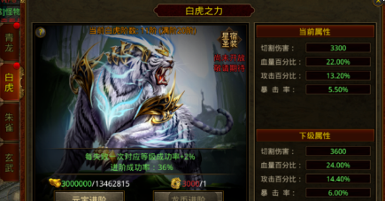 圣兽之力优先升级白虎,白虎是切割属性,有些老玩家不要以为青龙是切割哦