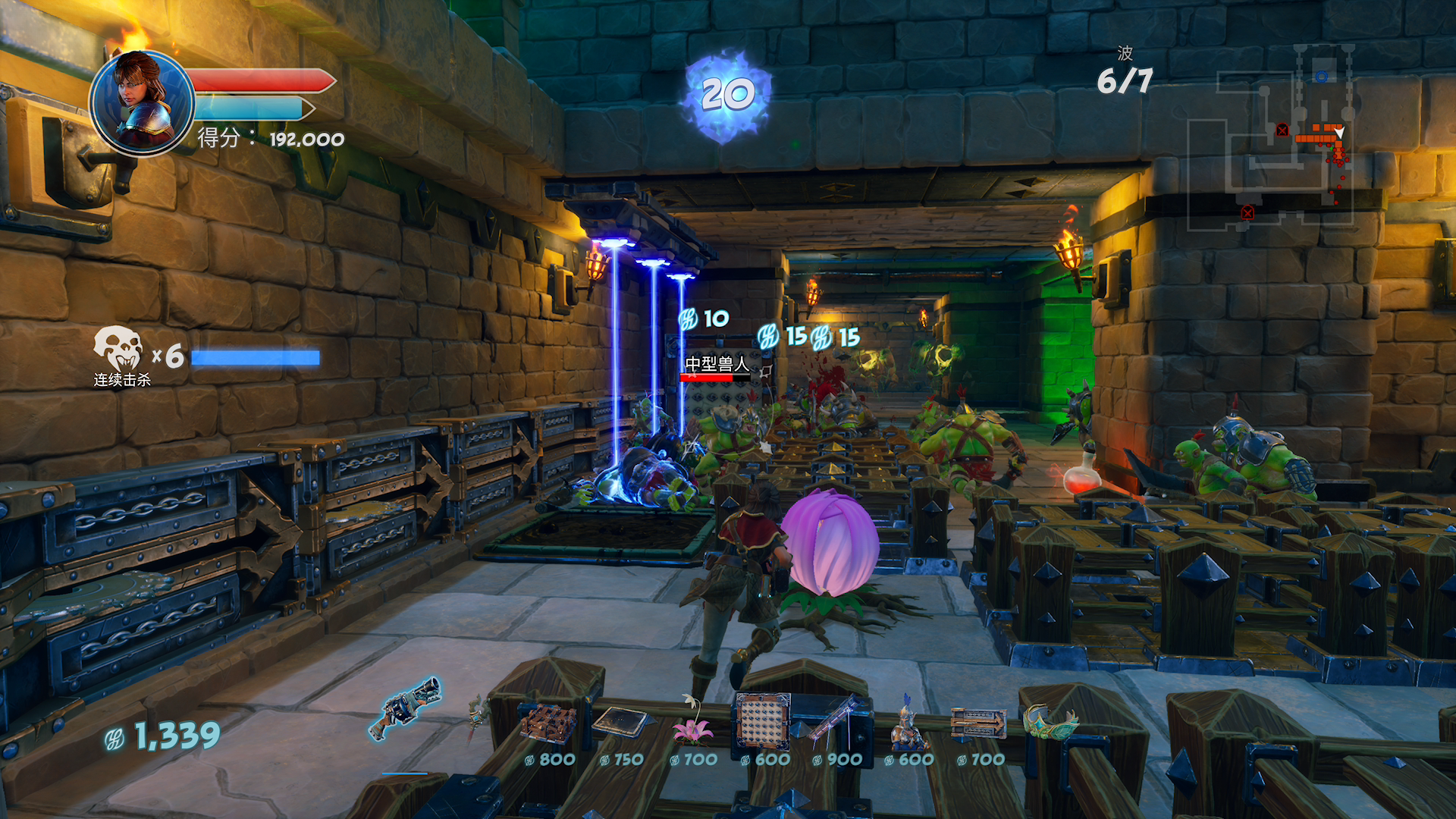 不同于我以前玩过的那种完全依赖炮塔的几款游戏,玩家在《OMD3》中能够依靠自己的操作、身法、武器搭配来造成不俗的伤害,而且初期提供的陷阱杀伤力略显一般,有时自己要去扮演这个“人肉防御塔”的位置。随着游戏流程的推进,能够逐渐感觉到双拳难敌四手,同时也会更加依赖多种多样的陷阱,不管是作为牵制还是主力输出。
