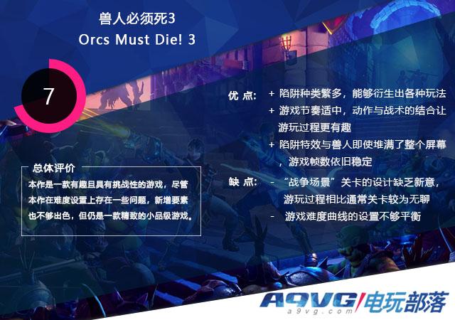 《兽人必须死3》是一款有趣且具有挑战性的游戏,在经历18个战役关卡后还有DLC战役、每周挑战、无尽模式等让玩家持续投入时间解锁更多陷阱、升级并反复尝试打出更好的成绩。尽管本作在难度设置上存在一些问题,新增玩法也不够出色,但仍不失为一款精致的小品级游戏。