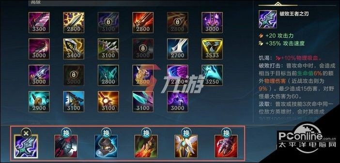 首先手游中目前没有渴血战斧这件装备非常适合剑魔的装备,使得剑魔的发挥受到了许多限制。端游没有渴血战斧,第一件个人倾向于出攻击型较强的 破败王者之刃 ,砍瓜切菜。