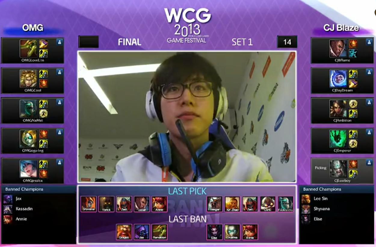 2013年WCG开设英雄联盟项目,中国和韩国都进行了预选赛,预选赛也是在S赛结束之后,当时的世界亚军皇族直接解散,中国这边OMG和WE参赛,但在参赛之前选择临时租借了PE的下路选手(夏季赛决赛中OMG被PE以3-2的比分击败)。