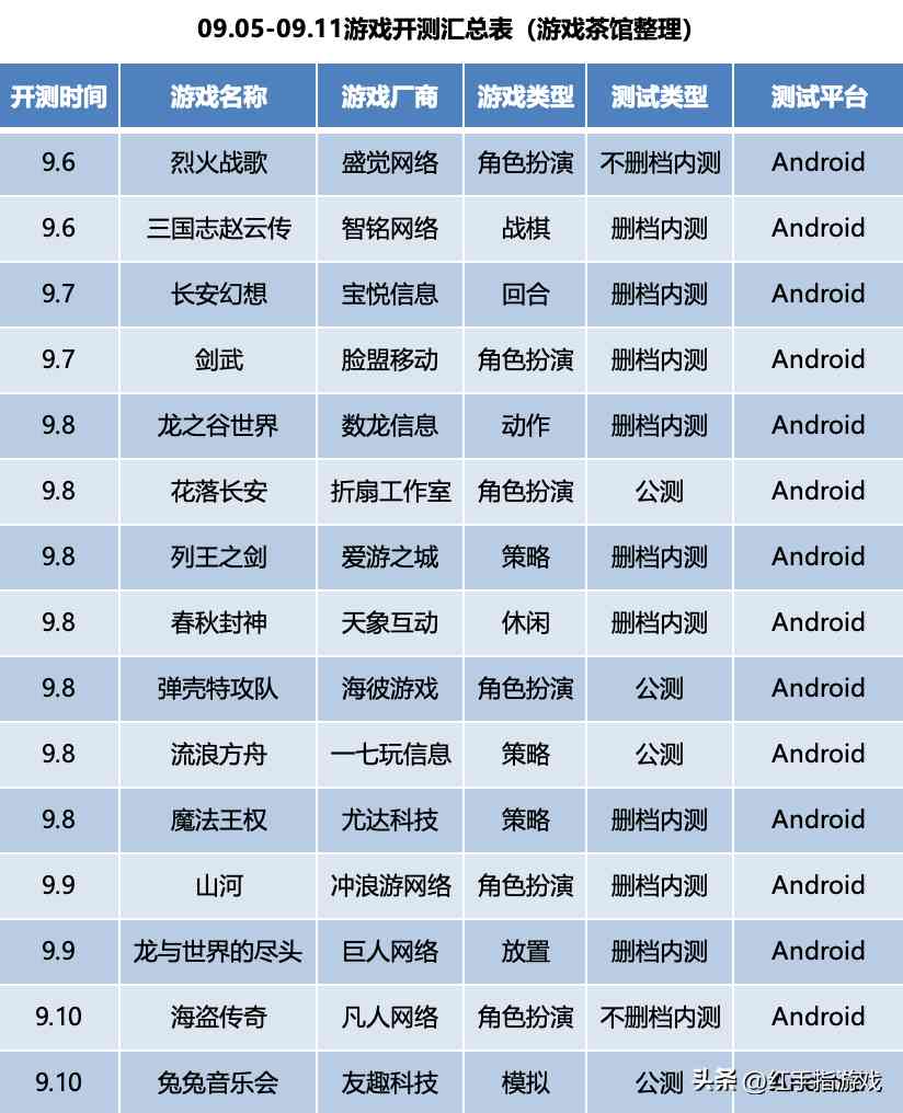 最后附上本周新游公测表(该图转载自游戏茶馆):