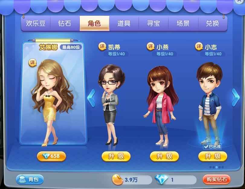 三个用欢乐豆购买的角色小斗我全都有了,哈哈哈嗝。