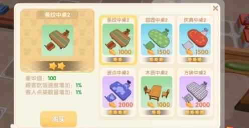 然后你可以开始购买各种各样的桌子,不过这里注意有的桌椅是只有你的厨师等级达到了,才能购买并且拜访。