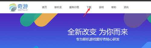 一.登陆奇游加速器官网,如果还没有账号,先在官网注册,点击进入:http://www.qeeyou.cn/。注册好以后登录进入官网,找到下载按钮: